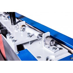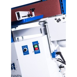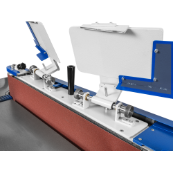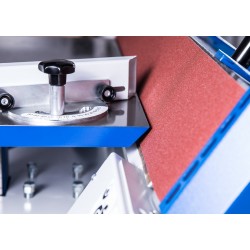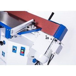 La machine est déjà équipée d'un oscillateur de bande, d'un système de pivotement continu et d'une table supplémentaire pour le ponçage sur poulie.