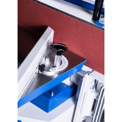 La table de travail à ressort, réglable en hauteur, assure une utilisation optimale de la bande abrasive et une sécurité de travail maximale.