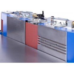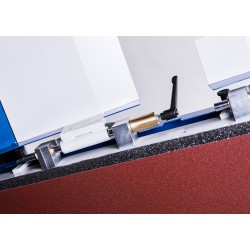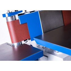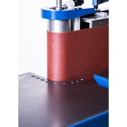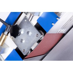La table de travail à hauteur réglable pneumatiquement et le tendeur de bande pneumatique garantissent une manipulation aisée.