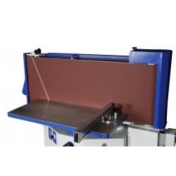L'unité de ponçage, d'une hauteur de 400 mm, oscille sur 30 mm, ce qui contribue à une longue durée de vie de l'outil et à une qualité de surface durable. La tension pneumatique de la bande abrasive permet un changement rapide et facile, tout en assurant une performance constante.