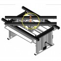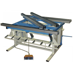 Table de travail développée pour l'assemblage de grandes fenêtres avec basculement pneumatique de 0° à 85°.